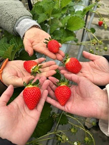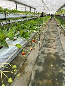 据介绍,在菖蒲绿色中心,从1月到5月可以在相邻的水耕园及附近的农家 “いちご狩り”( 体验采摘草莓) 。不过,这天采摘草莓还为时尚早,所以只让我们试吃了一颗 。说到草莓,如今是栃木县或福冈县比较出名,但据说在昭和30年代(约1955-1964年)后期,埼玉县曾是种植面积位居全国第一的一大产地 。“あまりん”、“かおりん”、“べにたま”等都是埼玉产草莓的品牌。