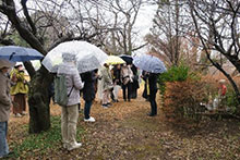 此次参观活动是在埼玉县内进行的,因此也前往岩槻市参观了“ともちゃん(小智)地藏” 。战后,在满洲的日本人难民收容所里,一位母亲临终前对孩子说:“如果想妈妈了,就看看自己的肚脐,妈妈就在那里。”为了悼念那位思念着逝去母亲而一边望着自己的肚脐一边离开人世的“ともちゃん”和收容所里的孩子们,由居住在岩槻市的遗华妇人村上米子女士发起并建造了这尊地藏像 。地藏像位于慈恩寺玄奘塔院内,此次参观也引起了我们对日本与玄奘三藏之间渊源的兴趣 。