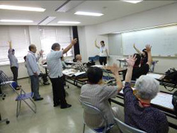 在中国归国者集中居住的高阳地区,有不少归国者去中心参加活动有困难,为此中心在这个地区开设了介护预防教室。为了提高大家自我保健意识,每次都先进行量血压测体重这样的健康检测。之后由从事护理工作的专家指导大家如何进行护理预防。在8月19日的介护预防教室,保健师教大家学做了歌谣体操。9月16日的介护预防教室请来了介护福祉士指导大家如何预防摔到。活动结束后,受到了这样的反馈意见「参加这项活动很开心」、「今后还会继续参加」。这项活动还增加了归国者之间的相互交流。
