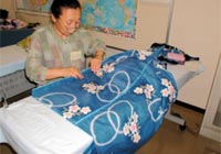 「回到日本后,要会作自己穿的和服。在中国时就这么想过。」今年已60岁的M女士浮现出欢欣地笑容。决定举办「和裁教室」的事,那是在五月初的几天。三月,M女士就提出了这样的建议。立刻,希望参加的人就达到了定员,「在归国者之间,对和服是这么重视……」真让人吃惊。查找自愿者讲师费了很大工夫,那还是在「中国归国者定着促进友之会」的协助之下解决的。每月二次,八个月为一期,现在正顺利的进行着。首先,从做浴衣(ゆかた)(入浴后穿的;现在夏季也当成休闲服穿)开始,夏季的节日结束之后,下个目标就是为在正月穿的,真的和服的制作挑战。